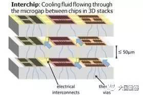 IBM公司在美国国防先期研究计划局(DARPA)“芯片内/芯片间增强冷却”(ICECool)项目的支持下,在嵌入式散热领域获新进展,研发了一个在片的解决方案,新的冷却技术来克服堆叠芯片的热障碍,有助于甚至冷却整个数据中心。
