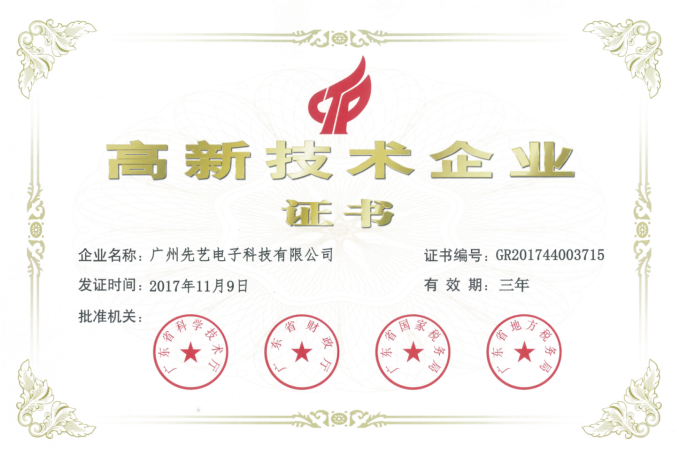 本次重新认定获得“高新技术企业”称号,是对先艺研发和技术水平的一次肯定,也是对公司全体员工的一次激励。广州先艺电子将继续不断的提升企业的自主创新及研发的能力,不断创新、不断发展,努力成为行业的领航者!