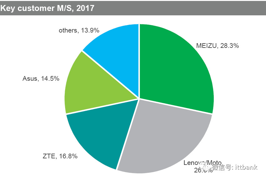 与德2017年智能机出货主要集中在魅族,联想,中兴,TCL(Alcatel),华硕和海外客户,魅族项目出货主要针对国内市场;联想,中兴,TCL(Alcatel)和华硕项目出货主要集中在海外市场。与德2018年开始参与联想Lenovo品牌智能机项目和平板项目,有望成为新的增长点。