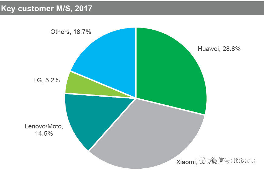 小米是龙旗最大的客户,且小米同样是龙旗的股东,合作项目比较稳定,2018年龙旗将继续与小米合作开发红米Note升级项目以及小米X系列产品,小米项目出货将继续保持增长。龙旗2018年继续与联想合作Moto E系列升级项目,同时参与Lenovo品牌国内项目,联想智能机出货有望小幅增长。