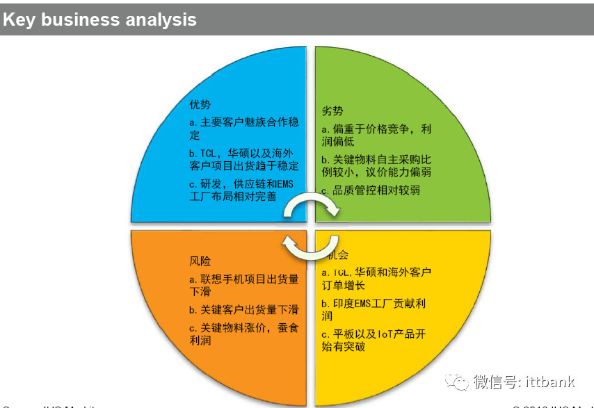 与德目前在研发设计,供应链管控以及生产制造布局相对完善,并且其印度工厂已经开始承接对外EMS生产组装服务,目前主要客户是传音。由于与德在2015-2016年快速扩张,导致其研发成本偏高,且针对大客户项目争取侧重于价格竞争,导致其利润偏低。预计2018年与德智能机出货将会保持稳定,并且开始涉足平板,车联网产品以及EMS服务,寻求差异化竞争。