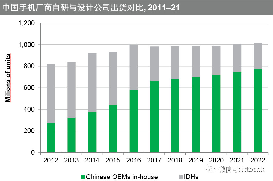 2017年,中国手机设计公司智能机整体出货3.19亿部,相对2016年下滑23%。中国手机厂商OPPO和vivo2017年智能机出货增长迅速,主要依托于精品化策略,提升单款机型销量,均为自研。手机设计公司智能机出货增长主要集中在华为和小米,合计增长在4000万部左右。联想和魅族ODM项目出货小幅下滑,另外Micromax, LAVA, INTEX, Spice等海外客户整体出货大幅下滑,ODM公司的增长目标由海外品牌转向国内手机厂商海外市场出货量的增长。
