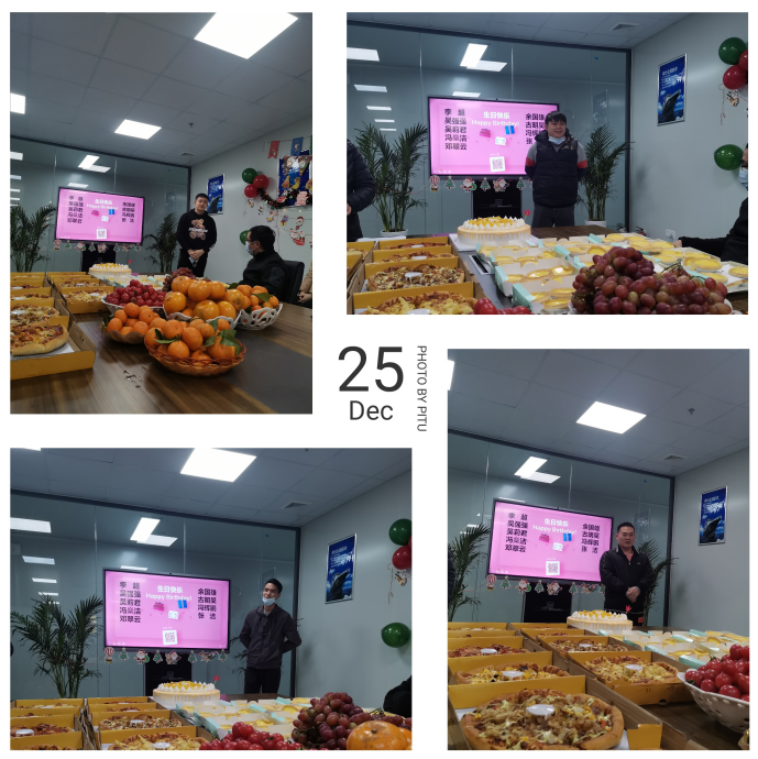 2020年12月25日,叮叮当!叮叮当!浪漫的圣诞节承载着无尽祝福,公司为第四季生日小伙伴举行生日会,行政小姐姐们提早精心布置活动现场,特意挑选的美食,忙得不亦乐乎。