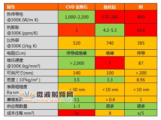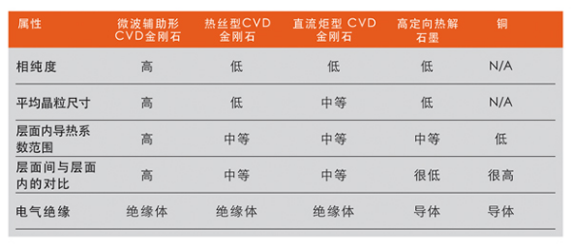 表2. 不同CVD 技术合成的多晶金刚石热属性比较