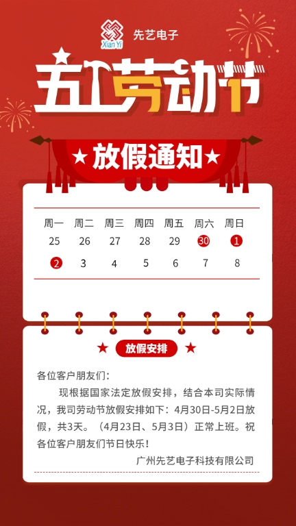 先艺电子| 关于2022年“五一”劳动节放假安排
