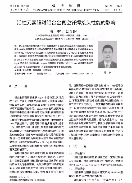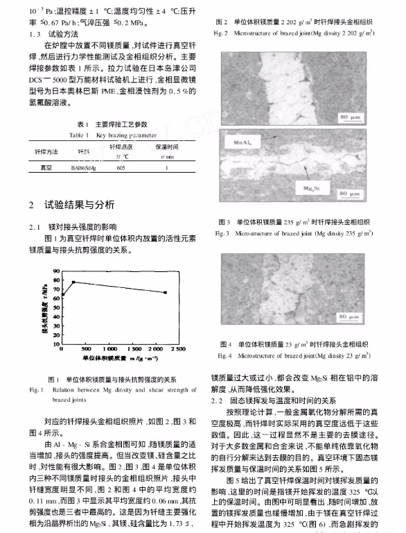 活性元素Mg对铝合金真空钎焊接头性能的影响