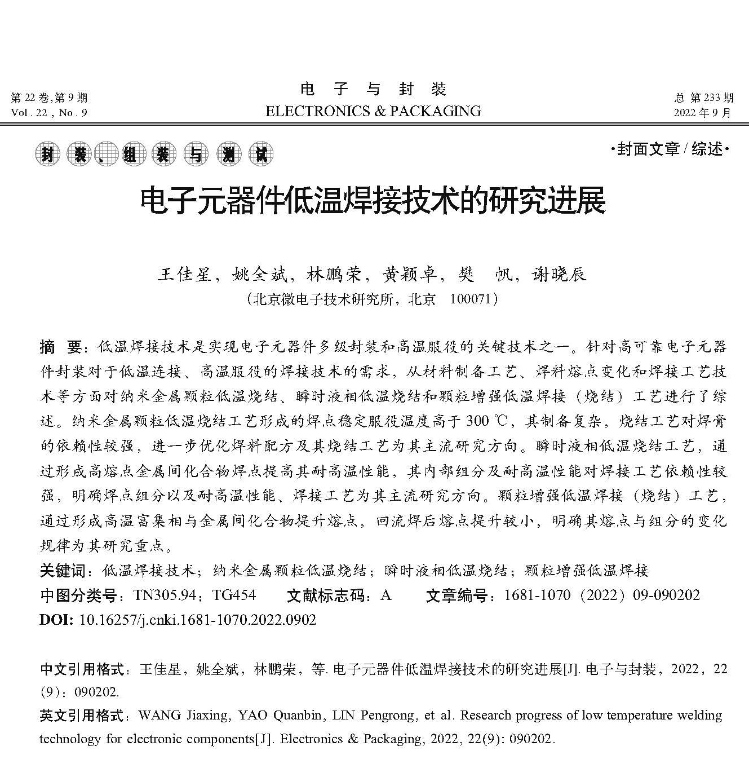免责申明:本文内容转自电子与封装 2022, Vol. 22 Issue (9): 090202。文字、素材、图片版权等内容属于原作者王佳星、姚全斌、林鹏荣、黄颖卓、樊帆、谢晓辰,本站转载内容仅供大家分享学习。如果侵害了原著作人的合法权益,请及时与我们联系,我们会安排删除相关内容。