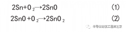 根据金锡合金的氧化机理,氧易与金锡合金中的锡反应生成金属氧化物,在表面形成氧化膜,反应过程如下式所示。