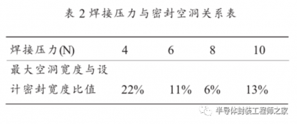 表 2 是不同焊接压力时,最大空洞宽度占设计密封宽度的比值。
