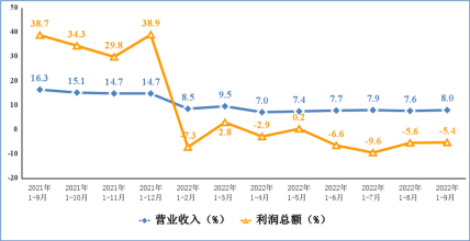 图3 电子信息制造业营业收入、利润总额累计增速