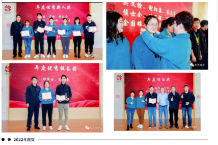 在先艺我们班始终坚信每一份努力都不会被辜负,每一份坚持都将会有收获。回顾2022年,先艺电子涌现出一批批奋勇当先的优秀者。在表彰环节,主持人激情洋溢地宣读2022年度中获得“年度标杆奖”、“年度优秀员工”、“年度优秀新人”“年度优秀组长”““年度优秀管理奖”“年度优秀部门奖”“专利奖”、“项目奖”及“三年、五年、十年服务敬业奖”等各种获奖者的名单,为公司发展树立先进典型,发挥榜样力量。
