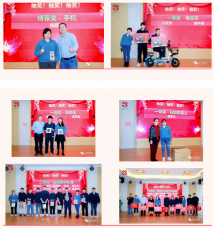 特等奖、一等奖、二等奖、三等奖等奖品琳琅满目,迎接新的一年,先艺电子准备了丰富的奖品——Apple iPhone 14、电动车、扫地机器人、投影仪、华为无线耳机、Gucci香水、无线音箱、暖风机……高达86%的中奖率,让现场气氛到达高潮。
