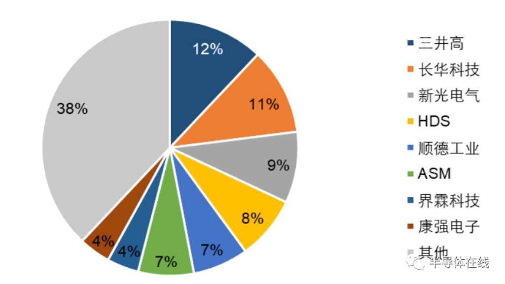 根据SEMI 数据,全球引线框架市场规模常年保持稳定,2020年为 31.95亿美元,同比增长3.5%。市场格局方面,在中国台湾厂商并购部分日本厂商之后,目前由日本和中国台湾厂商占据主导地位。