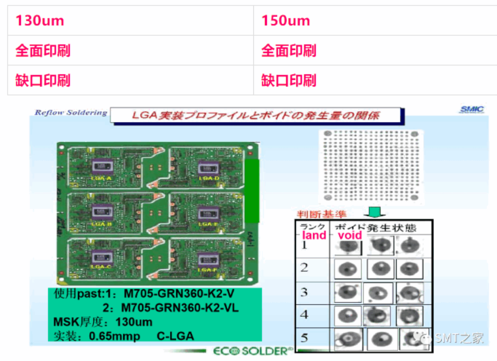 LGA的solder paste印刷量和void发生的检証