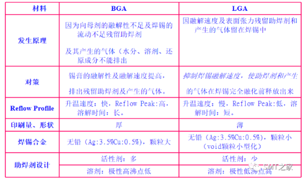 LGA和BGA的VOID发生原因: