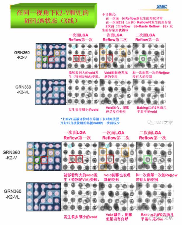 结论:void对策品的VL取得良好的结果,比较符合密闭型的焊接, FLUX的变化稳定。solder paste(粒度、FLUX)的使用重要。