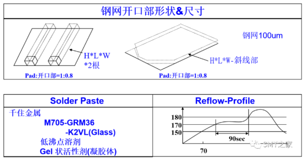 (4)使用锡膏的选定。防止void的发生,焊锡的size、活性剂、溶剂的种类。推荐值:焊锡粒子:25-45um,活性剂多,溶剂:标准高沸点低。