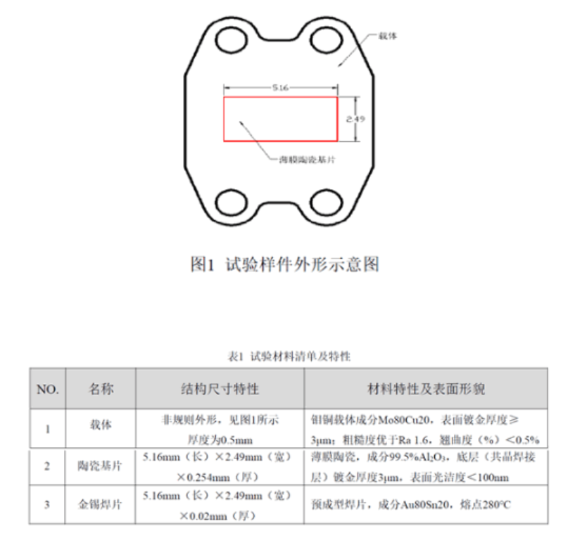 真空共晶焊接工艺技术中影响焊接质量的主要参数包括焊接温度、焊接时间、焊接件上压力、焊接氛围等因素,目前传统的芯片真空共晶焊接工艺是通过在芯片上设计工装施加压力来实现的,并且其对降低共晶焊接空洞率有着非常突出的作用,然而对于一些表面对压力敏感的芯片(如存在多处空气桥而无施压空间的砷化镓芯片等)而言,焊接过程中在不通过工装施加压力的情况下对芯片共晶焊接的空洞率进行优化控制至关重要。