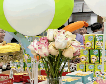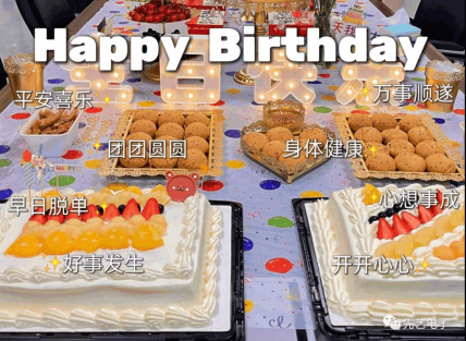 在热情响亮的生日歌中寿星们点燃蛋糕上的蜡烛,
