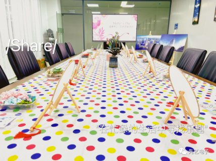 5月11日下午,由先艺电子举办的“DIY花艺团扇”活动,在大会议室如约进行。