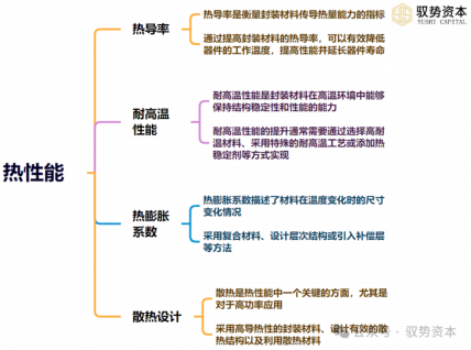 总体而言,热性能的优化对于确保半导体器件在各种工作条件下稳定运行至关重要。通过综合考虑热导率、耐高温性能、热膨胀系数和散热设计等因素,可以有效提升封装材料的热性能,提高器件的可靠性和性能。