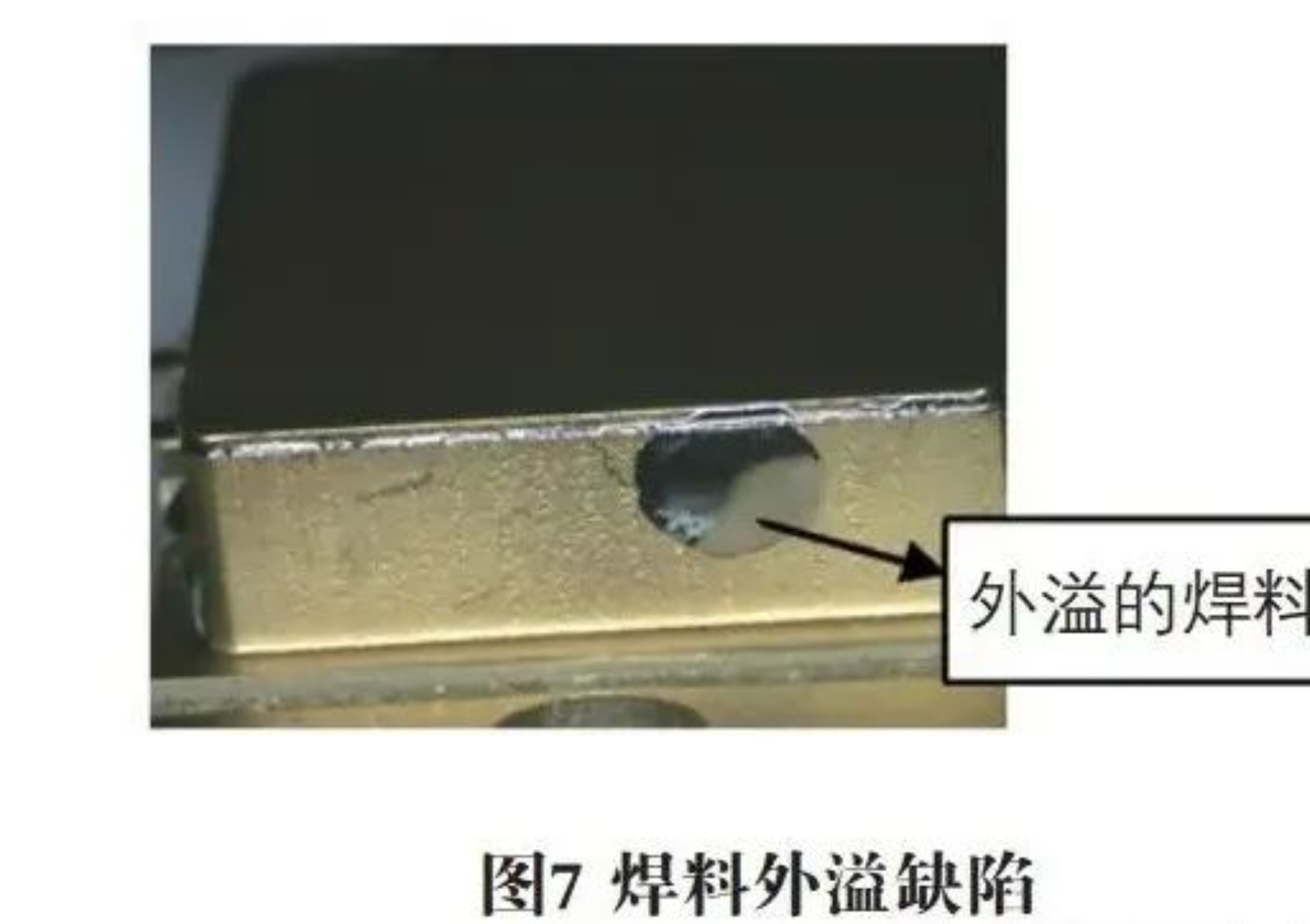4.5 外部目检封帽后的50只产品焊区光亮,焊料铺展性良好,无明显的孔洞、无爬盖和无焊料外溢等缺陷。