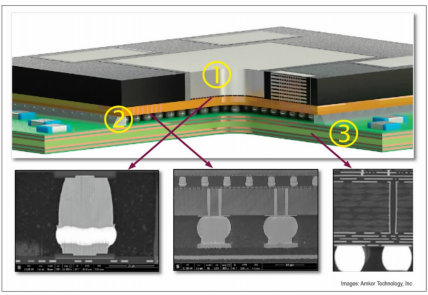 先进2.5D封装技术的三层特征结构。图源:Amkor
