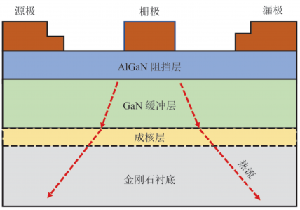 金刚石衬底 GaN-HEMT 器件热传输示意图[4]。