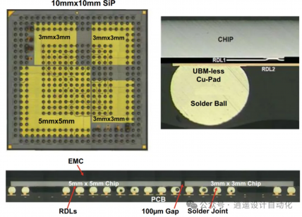 这种技术用扇出RDL中间层替代了TSV中间层、微凸点和底填。与传统的2D扇出技术相比,它提供了改进的性能和集成密度。