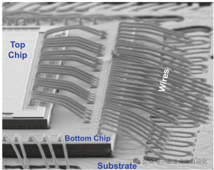 3D IC封装指的是不使用TSV的芯片垂直堆叠。常见的方法有几种: