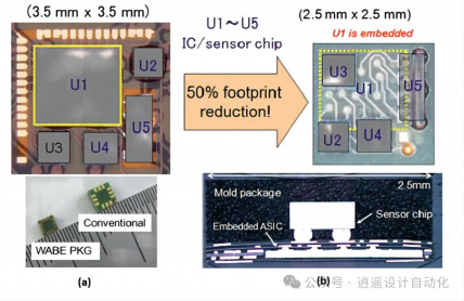 6. 嵌入式芯片: 芯片嵌入到封装基板中(图7)。