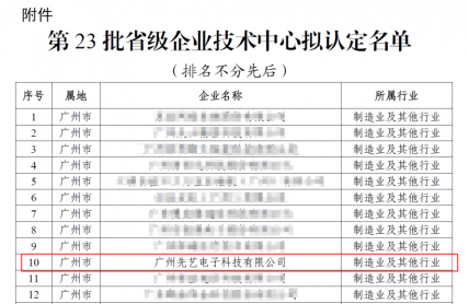 近日,省工信厅已公示第23批“省级企业技术中心”名单,先艺电子成功获评省级企业技术中心。