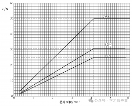 当芯片粘结面积介于0.32mm²(含)至3.14mm²之间时,芯片承受的最小剪切强度,可参照图1所示标准确定。