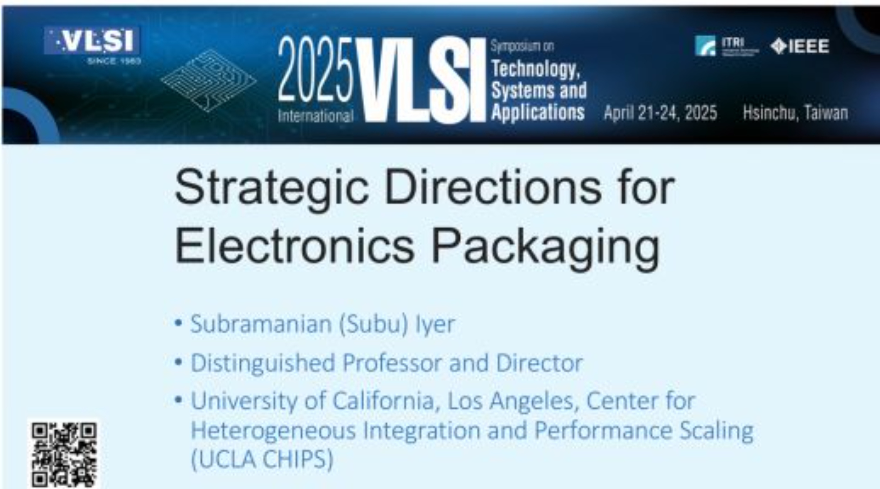 [1] S. S. Iyer, "Strategic Directions for Electronics Packaging," presented at the 2025 International Symposium on VLSI Technology, Systems and Applications (VLSI-TSA), Hsinchu, Taiwan, Apr. 21-24, 2025.