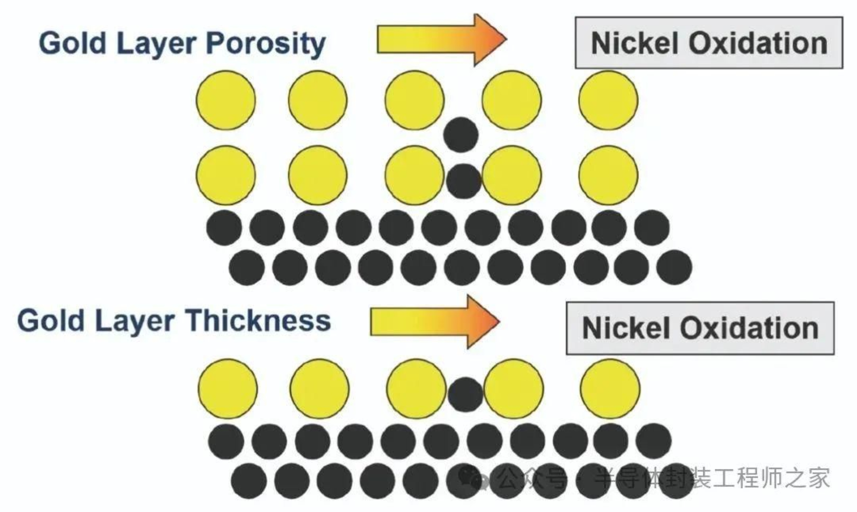 注意,长期高温退火可能导致镍层向金层迁移,从而干扰焊锡的润湿性。金锡合金焊料无法与镍润湿。如果镀层过薄或表面孔隙率较高,则更容易导致镍迁移现象。