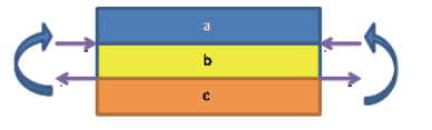 对于传统的铟封装单巴条高功率半导体激光器[10],由于半导体激光器和铜热沉之间的热膨胀系数差异为10.1×10-6/℃。在封装过程中,器件的温度需要由铟的熔点(156℃)降到室温(25℃),温差达131℃。根据公式(5)算得产生的热应力对于标准的10mm长的激光器巴条来说,将使铜热沉和激光器巴条间出现14μm的收缩差异,从而导致激光器巴条变形。而金锡焊料的熔点为283℃,比铟的高了127℃,从熔点降低至室温,若采用铜做热沉材料,热应力会导致芯片产生近26μm的形变,足以使芯片发生严重的变形,甚至开裂损伤。图 6 是焊料从熔点降至室温过程中热应力导致巴条弯曲的原理示意图。