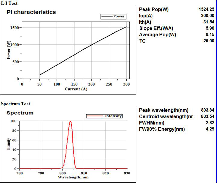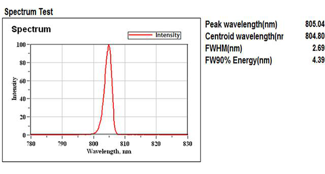 对于以半导体激光器作为泵浦光源激励固体、或光纤激光器的应用,需要窄光谱宽度的半导体激光器,以利于固体激光器晶体的高效吸收。通过减少泵浦半导体激光器的光谱宽度来提高光谱精度,使得激光系统设计者能够改善激光系统的体积、效率、功率和光束质量等参数,同时又减少了系统散热成本。光谱宽度是半导体激光器叠阵产品的关键指标之一,因此改善光谱特性有利于提高产品质量,减少成本及增加产品竞争力。