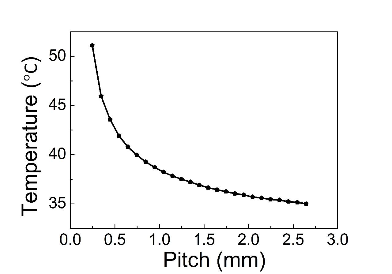 图4 不同pitch下传导冷却叠阵温度分布