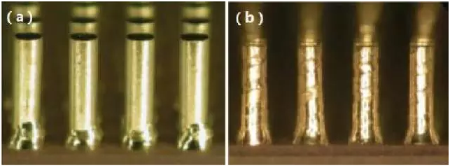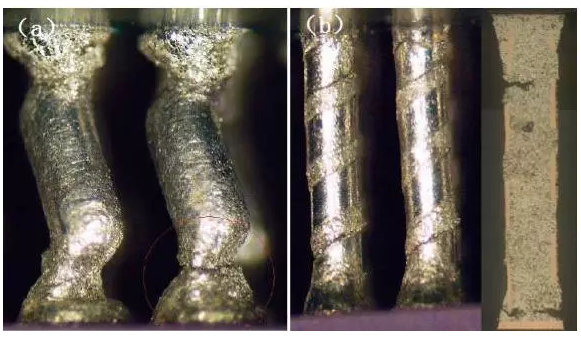图 2 CCGA焊柱 (a)90Pb/10Sn (b)80Pb/20Sn螺旋锡柱