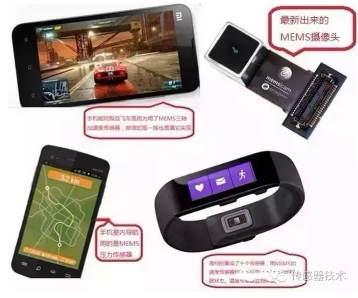 随着电子技术的发展,MEMS的应用领域越来越广泛,由最早的工业、军用航空应用走向普通的民用和消费市场。在智能手机上,MEMS传感器提供在声音性能、场景切换、手势识别、方向定位、以及温度/压力/湿度传感器等广泛的应用;在汽车上,MEMS传感器借助气囊碰撞传感器、胎压监测系统(TPMS)和车辆稳定性控制增强车辆的性能;医疗领域,通过MEMS传感器研成功制出微型胰岛素注射泵,并使心脏搭桥移植和人工细胞组织成为现实中可实际使用的治疗方式;在可穿戴应用中,MEMS传感器可实现运动追踪、心跳速率测量等。