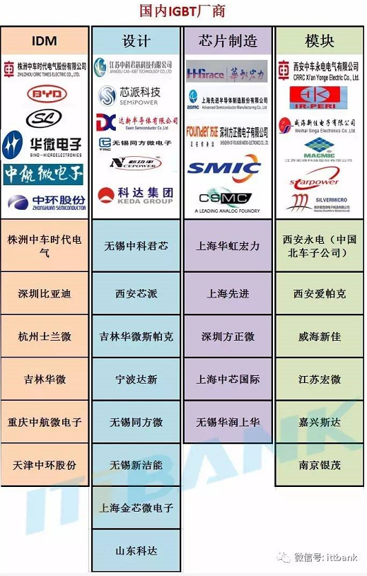 近年,中国IGBT产业在国家政策推动及市场牵引下得到迅速发展,已形成了IDM模式和代工模式的IGBT完整产业链,IGBT国产化的进程加快,有望摆脱进口依赖。以下为国内部分顶尖的IGBT厂商,涵盖了设计到制造: