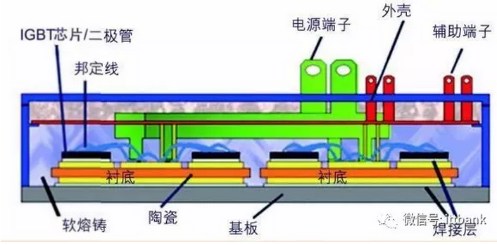 IGBT模块是由IGBT(绝缘栅双极型晶体管芯片)与FWD(而极管芯片)通过特定的电路桥接封装而成的模块化半导体产品;封装后的IGBT模块直接应用于变频器、UPS不间断电源等设备上。